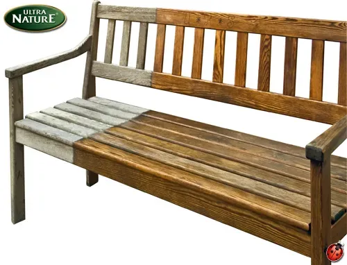 Traitement des meubles de jardin non traités en bois dur ou tendre, entretien des meubles huilés. Application au pinceau ou au chiffon.